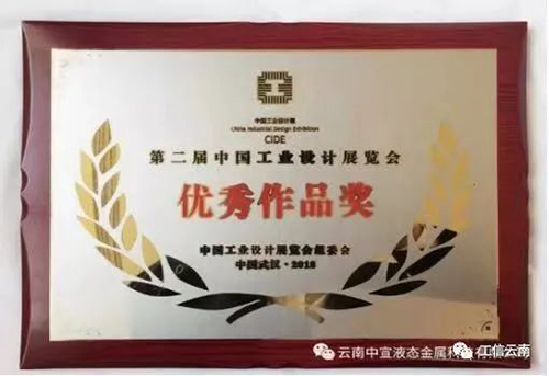 經(jīng)組委會(huì)評(píng)選,云南中宣液態(tài)金屬科技公司的液態(tài)金屬3D筆榮獲“第二屆中國(guó)工業(yè)設(shè)計(jì)展覽會(huì)優(yōu)秀作品獎(jiǎng)”,云南省工業(yè)和信息化廳榮獲“第二屆中國(guó)工業(yè)設(shè)計(jì)展覽會(huì)優(yōu)秀搭建獎(jiǎng)”。