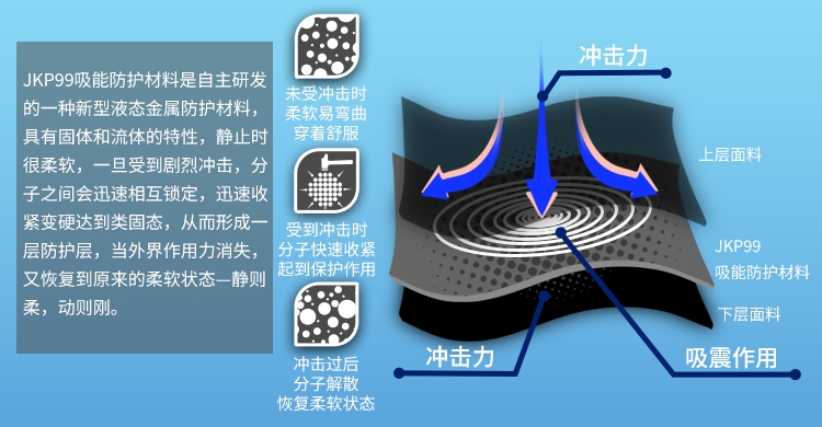 JKP99柔性仿生吸能防護(hù)材料運(yùn)用廣泛,目前應(yīng)用于公司康復(fù)理療、運(yùn)動防護(hù)等系列產(chǎn)品上。